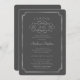 Um elegante rolo de banner e um quadro redimensionado de tom prateado e design de convite para festas de formatura escura que pode ser personalizado para graduações de segundo grau, faculdade, universidade ou escola profissional. Design por Holiday Hearts Design (todos os direitos reservados).