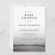 Convite moderno e minimalista de chá de fraldas de aquarela. Apresenta uma cinza de aquarela, mbre e uma simples tipografia. Personalize adicionando nomes, data, hora, local e outros detalhes do evento. Este simples convite para o chá de fraldas humano é perfeito para qualquer tema ou estação.