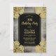 Lembrando-se dos dias passados, esse padrão de renda vintage ganhou nova vida com esse olhar rico e elegante de folha de ouro sobre uma cinza de prata para convite de aniversário de fundo afro-angustiado que pode ser personalizado para qualquer idade. Design por Holiday Hearts Design (direitos reservados) incorporando elementos de vintage.