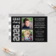 Anuncie seu formando de segundo grau em estilo com este anúncio e convite de festas de graduação multifoto. O cartão "Agora e Depois" de dois lados apresenta duas fotos do formando (uma imagem atual e mais antiga do primeiro dia de escola) com um design simples e masculino com uma letra inspirada em camisa desportiva. As cinzas pretas, prateadas e brancas podem ser personalizadas para corresponder às cores escolares. Um padrão de listras brancas se veste na parte de trás do cartão. *Dica de Foto: recorte suas fotos em forma quadrada antes de carregá-las.