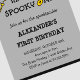 Convites Cinza Negra primeiro aniversario de Dia das Bruxas