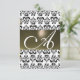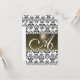 Convites CINZA PRETO DAMASK GEM MONOGRAM rsvp prata