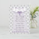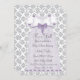 Bonito vestido roxo de lavanda roxo com pérolas roxas e arcos em um branco e cinza damasqueiro de fundo bebê lavanda roxo e convite para chá de cinza. Adicione os seus detalhes à frente e atrás adicionando os detalhes do evento, estilo da fonte, tamanho da fonte e cor e texto. Alguns gráficos gráficos ©BELGA-Dodles.