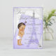 Vintage Paris convidada para chá de fraldas com uma adorável menina étnica vestindo uma fralda roxa e arco em um bonito fundo torre Eiffel. Você pode personalizar facilmente este chá de fraldas de Paris para o seu evento adicionando seus detalhes no estilo de fonte e na cor e no texto de sua escolha.