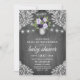 Cinzas Roxas de Prata Floral Rústica Lace Baby Shower Invitations - apresentam cinza ou fundo de madeira de vintage prateada/casca rústica com luzes de cordas e rendas florais. O design também apresenta flores elegantes em vários tons de roxo em um pote de maçã prateada que você pode personalizar para as iniciais de sua escolha.