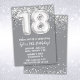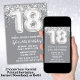 Cinza Silver 18.o Convite de aniversário 18 convite de aniversário para um rapaz ou menina com escrevendo moderno de escrita e balões de folha divertida.