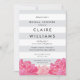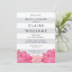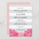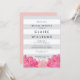 Os convites de chá de panela florais chicos apresentam cinzas largas e listras brancas com um conjunto de flores de pedras aquáticas ao longo do fundo, em cor-de-água rosa brilhante e rosa de quartzo. Adicione os detalhes do seu chá de panela em uma mistura elegante de letras de blocos e scripts em cinzas de coordenação e preto. Cartões inversos a rosa sólido, quartzo, rosa.