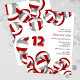 Este convite de festas temático de voleibol diverso para uma festa de aniversário apresenta clusters de volichões vermelhos, cinzas e brancos nas bordas superior e inferior da frente e um cluster de solteiros que cobre o verso do convite - personalize os detalhes da festa em um fundo branco - por katz_d_zynes