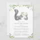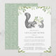 A natureza elegante inspirou convites virtuais para bebês apresentando uma doce ilustração aquosa de um esquilo mama compartilhando um ramo de bagas com seu bebê. Personalize com os detalhes do seu chá de fraldas virtual com tema floresta abaixo, incluindo detalhes sobre como se juntar on-line e o endereço para enviar cartões e presentes.