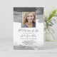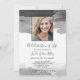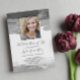 Convite moderno ao serviço memorial, com pinceladas de cinzas de aquarela em torno de uma foto do seu amado.