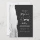 A borda esquerda deste elegante e moderno convite de aniversário 50º apresenta uma cinza e uma aquarela branca, aparada com cintilação fina prateada. O texto personalizável combina a escrita manual de cinzas prateadas, fontes copperplate e itálico em um fundo preto de ardósia. Adicione instruções RSVP na parte traseira da placa, juntamente com um código QR que os convidados podem verificar para responder on-line.