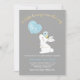 Procurando um chá de fraldas de coelhinho doce para um bebê? Este design apresenta um falso título de caligrafia em ouro, um coelho e um balão de aquarela. O fundo é uma cinza com um padrão listrado de cor branca e azul-bebê no verso. O cabeçalho falso da caligrafia em ouro não pode ser alterado, mas todos os outros textos podem ser editados. O convite para chás de fraldas de coelhinho deste rapaz está pronto para ser personalizado.