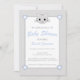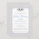 chá de fraldas bonito em cinza pastel e azul bebê. Apresenta um desenho animado sorridente de gato/gatinho em cinza, e uma cinza e um padrão de fundo branco de bolinhas. É totalmente personalizável.