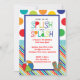 Adorável, bolinhas e stripe esplique o convite de aniversário. Também disponível em um esquema de cor rosa. Perfeito para a festa de piscina de aniversário de uma criança, bloco de papel, praia, verão ou qualquer festa do tema da água!