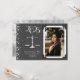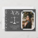 Celebre o novo formando de doutorado juris da faculdade de direito com este anúncio de graduação em prata e Cinza! Elegante com uma borda de fotos vintage e sotaques de confete dourados! Perfeito para qualquer estudante de Direito!