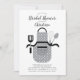Comece seu evento com o nosso divertido retrô beije o Chá de panela da cozinha do cozinheiro com um avental e whisk, espátula e colher em cinza e branco. Personalize nosso convite com suas informações de chá e você está pronto para ir.
