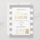 Cinzas quentes e listras brancas com sotaque de ouro criam um convite de festas feminino e masculino de aquecimento doméstico. Os elementos "Coração" e "Chave" podem ser movidos quando você clica em "personalizá-lo".