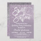 Este convite de aniversário elegante e feminino dos Dezesseis é perfeito para a sua adolescente. Ele mostra um brilho fino brilhante brilhante brilhante brilhante e roxo empoeirado de fundo ombre na frente com tipografia personalizada de script de pincel branco. Nas costas há uma cinza lilás roxa e uma luxuosa. É elegante, chique, moderna, glamourosa e bonito!