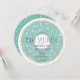Este giro e moderno círculo de chá de aspersão para bebês apresenta rosquinhas com icings e borrifadas azuis de menta/verde-turquesa sobre fundo branco. O verso apresenta um fundo azul de turquesa / branco com borrão. Personalize para suas necessidades. Você pode encontrar mais produtos correspondentes na minha loja.