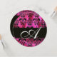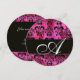 CONVITES CÍRCULO MONOGRAMA DE TECIDO DAMASCO PRETO FUCHSIA