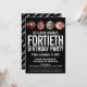 Convite para aniversário de 40 anos de modelo de foto simples, preto e branco, preto e branco, sem caráter visual. Personalize este convite de aniversário milestone com seus próprios detalhes de evento de festa de aniversário, e quatro fotos diferentes, uma de cada década do seu aniversariante ou garota nos círculos fotográficos. Outras cores de anos e itens correspondentes estão disponíveis. © Original design por Sarah Trett para www.mylittleeden.com no Zazzle.