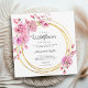 Uma ilustração encantadora de aquarela, com flores silvestres cor-de-rosa e fuchsia, numa moldura geométrica de círculos dourados (efeito digital, não folha real), enfeita este convite de chá de menina, perfeito para uma celebração de primavera ou verão. Flores cor-de-rosa e cor-de-rosa entrelaçam, por um suave e doce convite para celebrar a chegada da sua pequena flor selvagem no caminho.