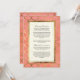 Este fundo pintado à mão com aquarela varia de um rosa brilhante a um coral quente, quase laranja, em um sutil e elegante degradê de aquarela pintado à mão. Um círculo geométrico, padrão clássico art déco de vieira, é renderizado em uma folha de ouro falsa e uma aparência de camadas falsas que é graficamente projetada para enganar o olho. Suas direções de condução e acomodações de hotel são personalizadas usando os campos de modelo. Se você precisar de ajuda com isso, basta nos enviar uma mensagem, ficaremos felizes em ajudar a ajustar as coisas para você uma vez que você tenha todas as suas informações no formulário. NOTA: Este é um design impresso plano, não há brilho ou tinta metálica dourada real usada.