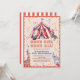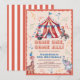 This cute and retro "come one, come all" kid's birthday invitation features a circus/carnival tent with an elephant, giraffe, bunny and seal. The reverse side features a white background with red stripes. Personalize for your needs. You can find more matching products at my store.