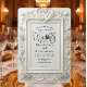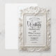 Defina o tom para uma união de conto de fadas atemporal com este design ornamentado e inspirado no vintage. Perfeito para casais que buscam luxo tradicional e romance clássico. Este design apresenta uma renderização digital sofisticada de uma moldura barroca ornamentada em 3D, criando uma aparência esculpida com trabalho de pergaminho simétrico e floreios de folhas. No centro, dois cisnes pareados formam um delicado brasão em forma de coração, rodeado por rosas decorativas, tudo renderizado em tons suaves de marfim e branco-cremoso com sombreamento cinza claro sutil para imitar profundidade. O texto é apresentado em um cabeçalho de letra cursiva elegante, combinado com tipografia serifada de carvão tradicional para um acabamento formal. Esta é uma imagem impressa plana com um efeito de relevo falso impresso, não material realçado ou em relevo.