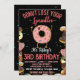 Perder rosquinha seus chuveiros, mas é meu aniversário de 3 anos! Um convite de aniversário personalizado único com uma série de rosquinhas saborosas e uma ilustração de rosquinha Kawaii. Personalize-o com todos os detalhes do evento de aniversário. A parte de trás apresenta uma colagem colorida de espiral com um fundo preto. Excelente para garotas que completem três anos!