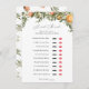 "Ele disse, ela disse" um cartão de jogo de Chá de panela com uma cascata de cor d'água de verde e fruta de citros laranja para um chá do tema "espreme principal".