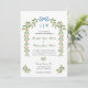 Este elegante convite Monogrammed apresenta uma aquarela ilustrativa de uma delicada fazenda com citros e um charmoso arco azul. A design evoca um senso de calor e alegria, perfeito para uma celebração de inverno.