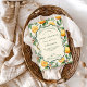 A fresh and cheerful baby shower design inspired by sunny citrus orchards. Bright lemons, delicate blossoms, and soft green leaves frame a classic scalloped centerpiece, creating a warm and inviting look. Perfect for spring and summer celebrations, this design blends natural charm with elegant typography for a timeless feel. A beautiful choice for honoring the mother-to-be in a vibrant, joyful setting.