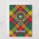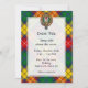 Crachá da crista buchana rodeado por uma correia e fivela sobre fundo de tartã clã. Texto personalizado.