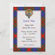 Crachá da crista Clan Carnegie rodeado por uma correia e fivela sobre fundo tartano. Texto personalizado de ambos os lados.