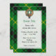 Crachá da crista Clan MacArthur cercado por uma correia e fivela sobre fundo tartano. Texto personalizado de ambos os lados.