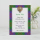 Crachá da crista Clan MacDonald rodeado por uma correia e fivela sobre fundo tartano. Texto personalizado de ambos os lados.