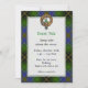 Crachá da crista Clan MacInnes rodeado por uma correia e fivela sobre fundo tartano. Texto personalizado de ambos os lados.