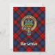 Crachá da crista Clan MacLachlan cercado por uma correia e fivela sobre fundo tartano. Texto personalizado de ambos os lados.