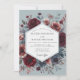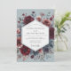 Embrace a dramatic and romantic aesthetic with this moody botanical design. A stunning arrangement of deep burgundy and claret anemones bursts forth from a muted slate blue background. Touches of soft blush and dusty greenery add depth and a vintage, painterly quality, perfect for an elegant and artistic union.