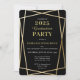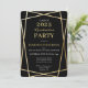 Comemore sua graduação em 2023 com a família e amigos com este elegante convite de festas de formatura geométrica preto e ouro. Este design apresenta um estilo formal em preto e ouro com sotaques geométricos dourados e um falso ouro de volta.