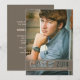 O estilo moderno com tipografia do entalhe permite que sua foto transforme-se parte do design. A banda neutra do marrom do mocha igualmente caracteriza o nome e a escola do seu filho. Na parte traseira, personalize sua informação da festa de formatura ou do anúncio.