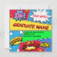 Pow! Sim! O convite do estilo da banda desenhada de 2022. Personalize-o com o nome do formando, hora, data e endereço do local. Convites coloridos para seu próprio mais velho super-herói!