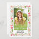 Anúncio de fotos na fronteira floral da graduação de 2017. Uma bela borda floral de flores cor-de-rosa e coral com folhas verdes e uma faixa verde adoram este excelente convite para o seu evento de graduação.