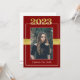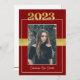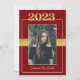 Este convite para a graduação de marrom (vermelho) e ouro Classe de 2023 pode ser personalizado para convidar para iniciar exercícios e/ou uma festa de formatura em honra do formando. Isso funcionaria bem para formandos masculinos ou femininos. A frente apresenta um retrato do estudante graduado colocado com destaque na 'classe de 2023' acima da fotografia e o nome do formando abaixo. Há também uma fita falsa sobre o meio atrás da foto. O verso contém todas as informações necessárias para comparecer às festividades. Uma linha de marrom (vermelha) e a "classe de 2023" estão na borda inferior. Este convite funcionaria bem para o segundo grau e graduação universitária.
