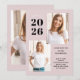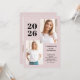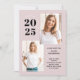 Esses convites de festas modernos e na moda apresentam três fotos do formando, além do ano de graduação de 2023 em texto em negrito sobre fundo rosa-pincelado.