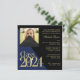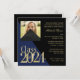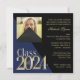 Preto com ouro e classe de cor azul editável de convite para a graduação de 2024 sem foto. Selecione seus próprios estilos de fonte e texto como preferido, este convite clássico de bloco de graduação 2024 pode ser feito para corresponder às cores da sua escola.