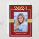 Este convite para a graduação da Maroon Red & gold Class de 2024 pode ser personalizado para convidar para iniciar exercícios e/ou uma festa de formatura em honra do formando. Isso funcionaria bem para formandos masculinos ou femininos. A frente apresenta um retrato do estudante graduado colocado com destaque na 'classe de 2024' acima da fotografia e o nome do formando abaixo. Há também uma fita falsa sobre o meio atrás da foto. O verso contém todas as informações necessárias para comparecer às festividades. Uma linha vermelha marrom e a "classe de 2024" estão na borda inferior. Este convite funcionaria bem para o segundo grau e graduação universitária.