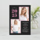 Esses convites de festas modernos e na moda apresentam três fotos do formando, além do ano de graduação de 2025 em negrito, cor-de-rosa sobre fundo preto escuro. Muitos sotaques cor-de-rosa adicionam um toque colorido à frente da placa.