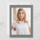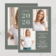 Esses convites de festas modernos e na moda apresentam três fotos do formando, além do ano de graduação de 2025 em texto em negrito sobre um fundo verde-musgo/cinza.